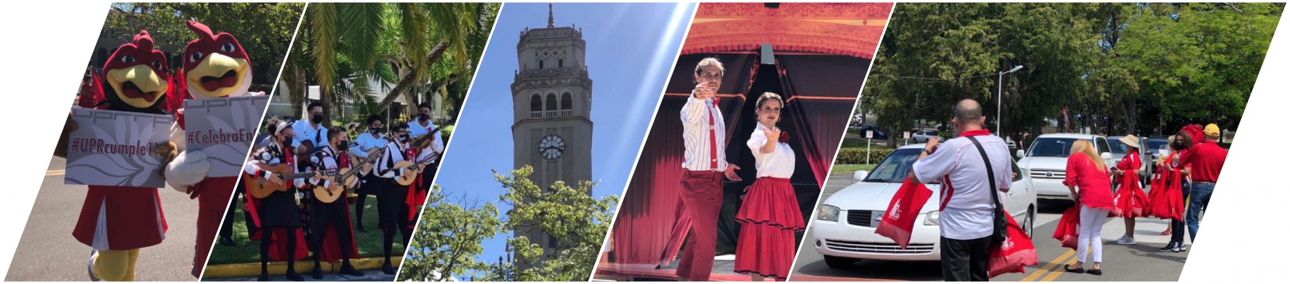 Frente a la histórica Torre de la UPR, los visitantes eran recibidos por un grupo representativo de la institución, encabezado por el rector Luis Ferrado Delgado y el vicepresidente de la UPR, Ubaldo Córdova Figueroa, quienes hacían entrega de obsequios conmemorativos del aniversario. Desde sus vehículos, los asistentes disfrutaron de eventos artísticos y culturales, entre ellos de la Tuna de la UPR, del Conjunto Criollo, del UPR Dance Team y de la comparsa de Agua Sol y Sereno, entre otros.