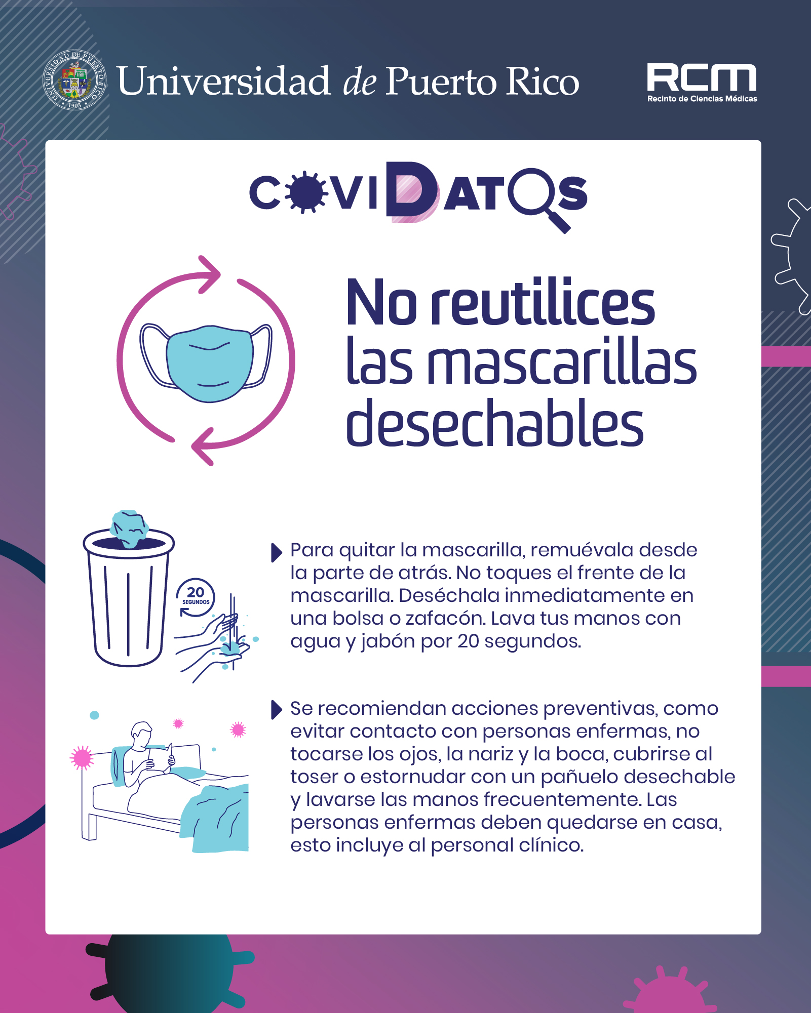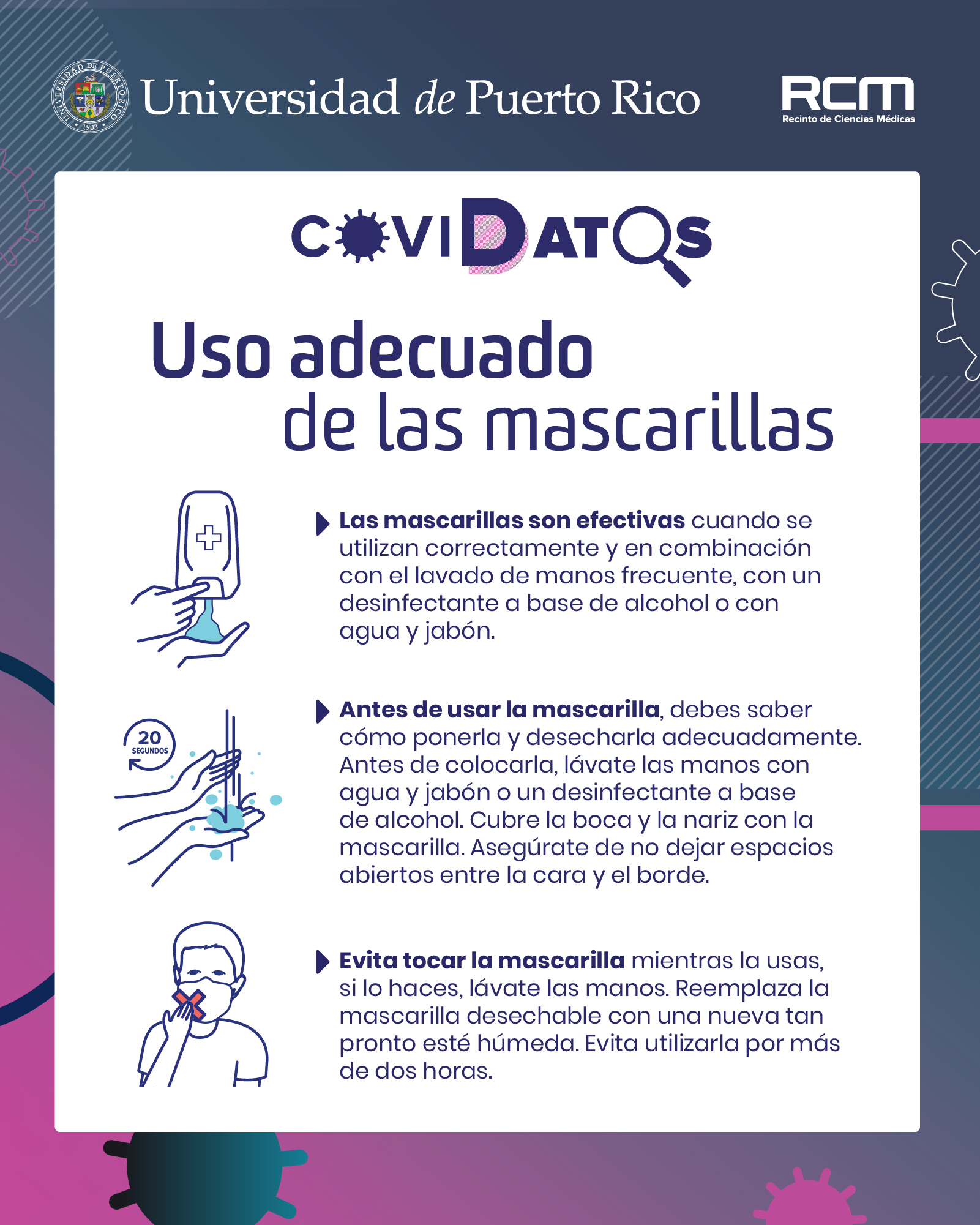 San Juan, Puerto Rico- Con el propósito de salvar vidas y frenar la propagación del COVID-19 en la isla, la Universidad de Puerto Rico (UPR) lanzó la campaña educativa titulada COVIDATOS, una iniciativa gestada por profesionales de la salud y estudiantes del Recinto de Ciencias Médicas (RCM).