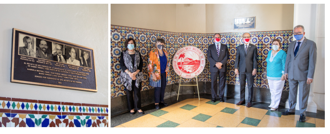 Hoy miércoles 3 de marzo, fue develada oficialmente la tarja que da testimonio del reconocimiento a las cinco figuras que han recibido el Premio Nobel -máximo galardón en el mundo de las artes y las ciencias- que han sido parte del claustro de esta institución, “honor que sin duda alguna pone de manifiesto el prestigio internacional que nuestra máxima casa de estudios ha tenido a través de la historia”, según aseveró el Dr. Luis A. Ferrao, rector del Recinto de Río Piedras de la Universidad de Puerto Rico, quien encabezó la ceremonia en compañía del Dr. Jorge Haddock, presidente de la UPR.