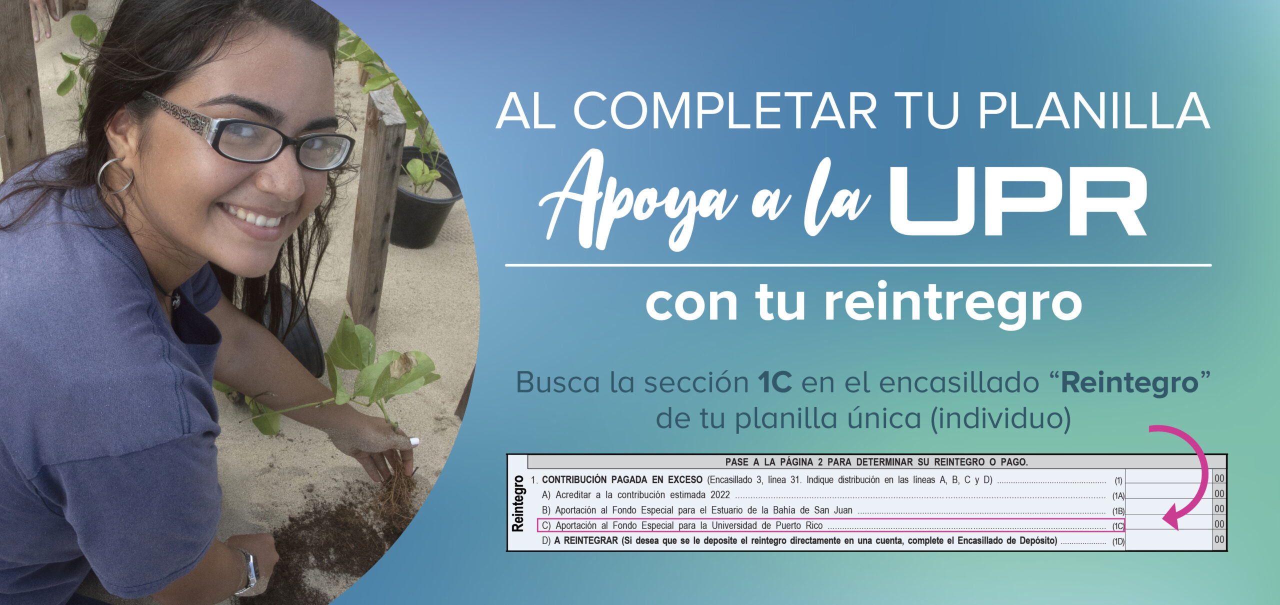 “No pierdas la oportunidad de aportar a construir un Puerto Rico mejor. Indica en tu Planilla de contribución sobre ingresos que deseas donar tu reintegro al Fondo de Becas de la UPR. Los estudiantes, la facultad y el personal administrativo de la UPR te lo agradecerán”, concluyó.