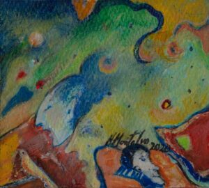 Hiram Montalvo inició su carrera en la pintura a principios de los años setenta (1970’s), heredando el interés internacional por lo abstracto; estilo desarrollado en los años sesenta (1960’s) que en Estados Unidos recibió el nombre de Expresionismo Abstracto y que rápidamente se esparció por el resto del mundo. Hoy celebramos sus cincuenta (50) años de creación artística, con una muestra que es el resultado de un proceso intuitivo, pero a la vez intencional, de conocerse y reconocer universos paralelos que afloran durante el trance del proceso creativo y que caprichosamente se acomodan en sus obras, a través de un trazo, una pincelada o un gesto de la espátula.