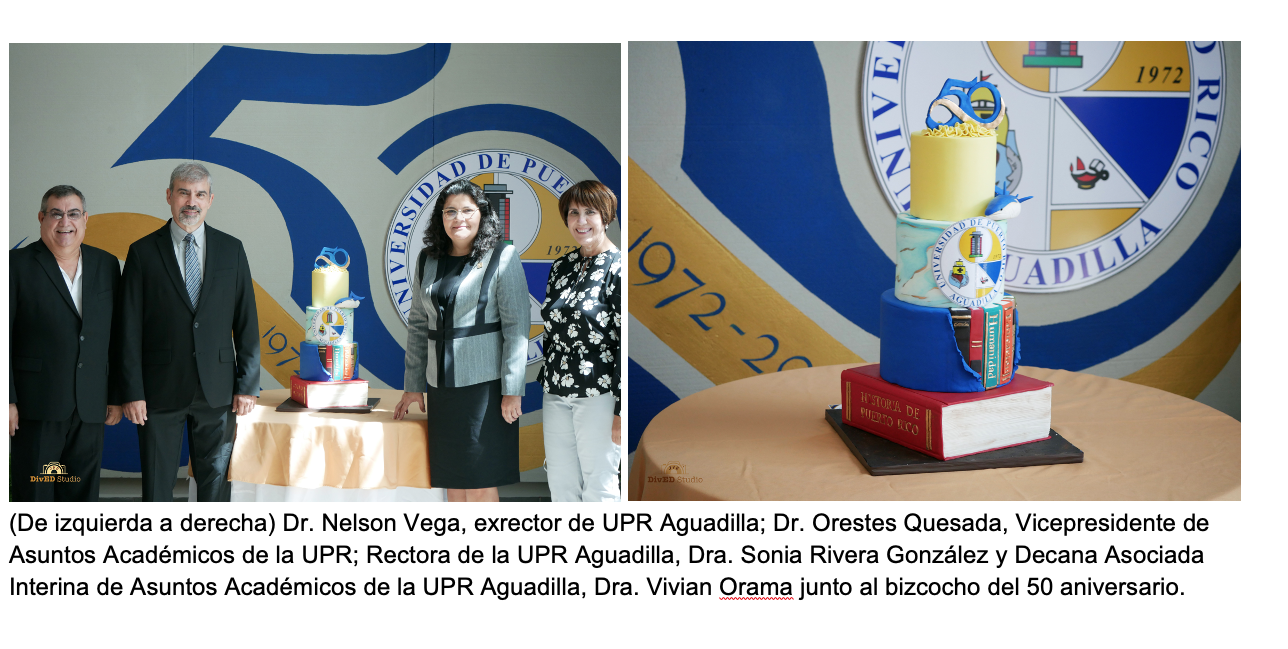 “Estos 50 años se enmarca en satisfacción, trabajo de excelencia y sobre todo en mucho compromiso. Los próximos 50 representan sin duda grandes retos, nuevas oportunidades y metas que nos invitan a reflexionar en los grandes recursos que seguimos aportando a Puerto Rico y la educación de excelencia que representa la Universidad de Puerto Rico”, enfatizó el Dr. Orestes Quesada, Vicepresidente de Asuntos Académicos e Investigación.