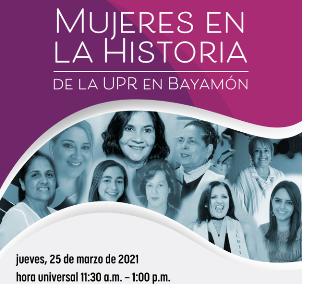 Bayamón P.R. – A tono con la celebración del mes de la mujer, la Universidad de Puerto Rico en Bayamón (UPR-Bayamón) anunció hoy la celebración de la conferencia: Mujeres en la Historia de la Universidad de Puerto Rico en Bayamón. El evento se realizará el jueves, 25 de marzo de 2021 de 11:30 a.m. a 1:00 p.m. y se transmitirá a través del Facebook Live de la institución.
