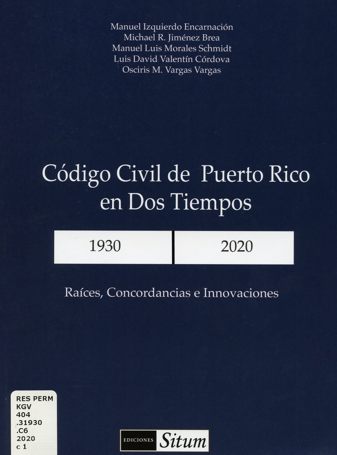 El Código Civil es una ley general que reglamenta una multiplicidad de asuntos relacionados con la vida de los seres humanos y su interacción cotidiana con los demás. En el año 1898, Puerto Rico experimentó un cambio de soberanía y, con ello, nuestro derecho hasta ese momento estrictamente civilista, comenzó a ser influenciado por el “common law”. En el 1902, el Código Civil español, sufrió varias enmiendas que incorporaron disposiciones del Código Civil de Luisiana, que también estaba fundamentado en el Código Napoleónico. Luego en el 1930, se revisó el Código de 1902, aunque los cambios introducidos fueron menores. El 18 de junio de 2018 se radicó el P. de la C. 1654 con el objetivo de establecer el nuevo ordenamiento jurídico privado y derogar el “Código Civil de Puerto Rico de 1930”, según enmendado. Después de casi dos años de haberse radicado el proyecto, el 1 de junio de 2020 se convirtió en ley y en el Nuevo Código Civil de Puerto Rico.