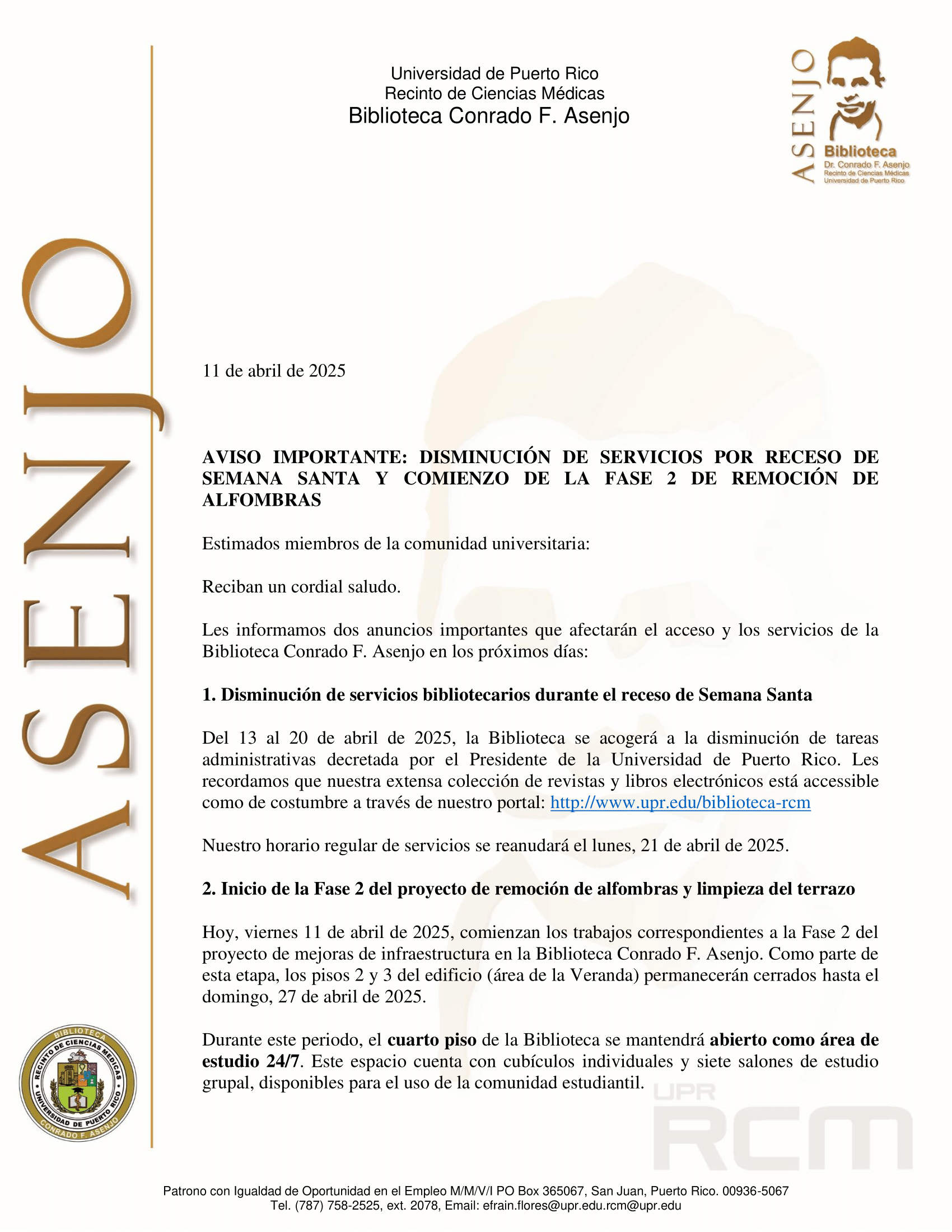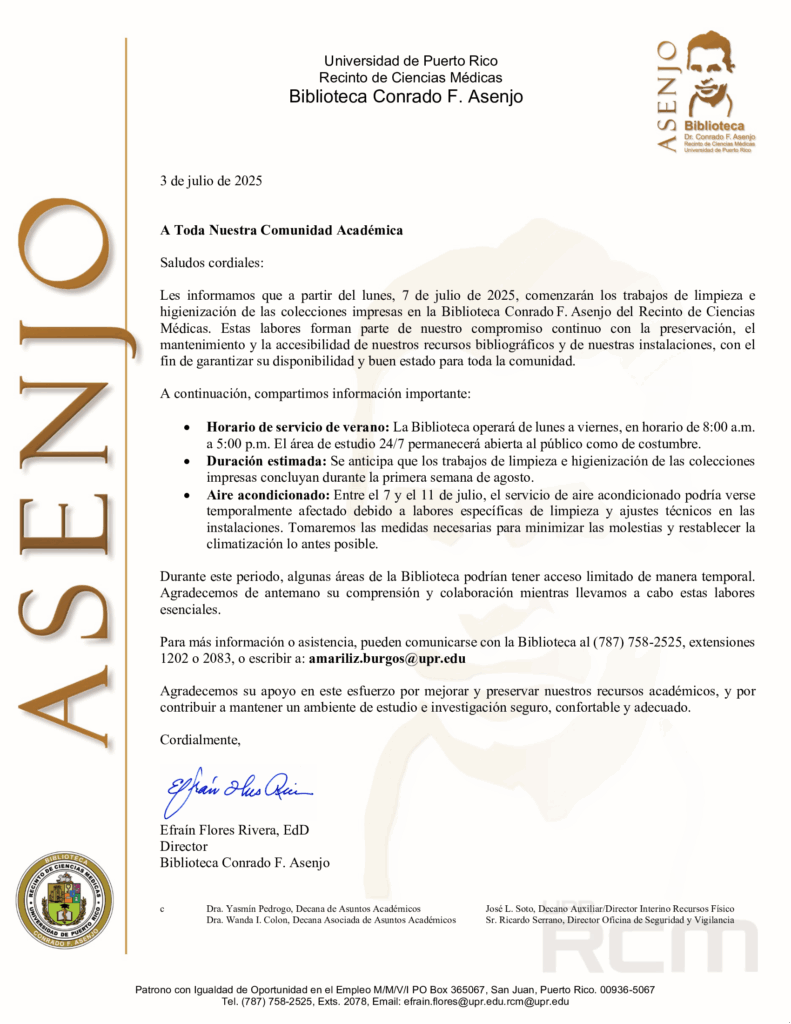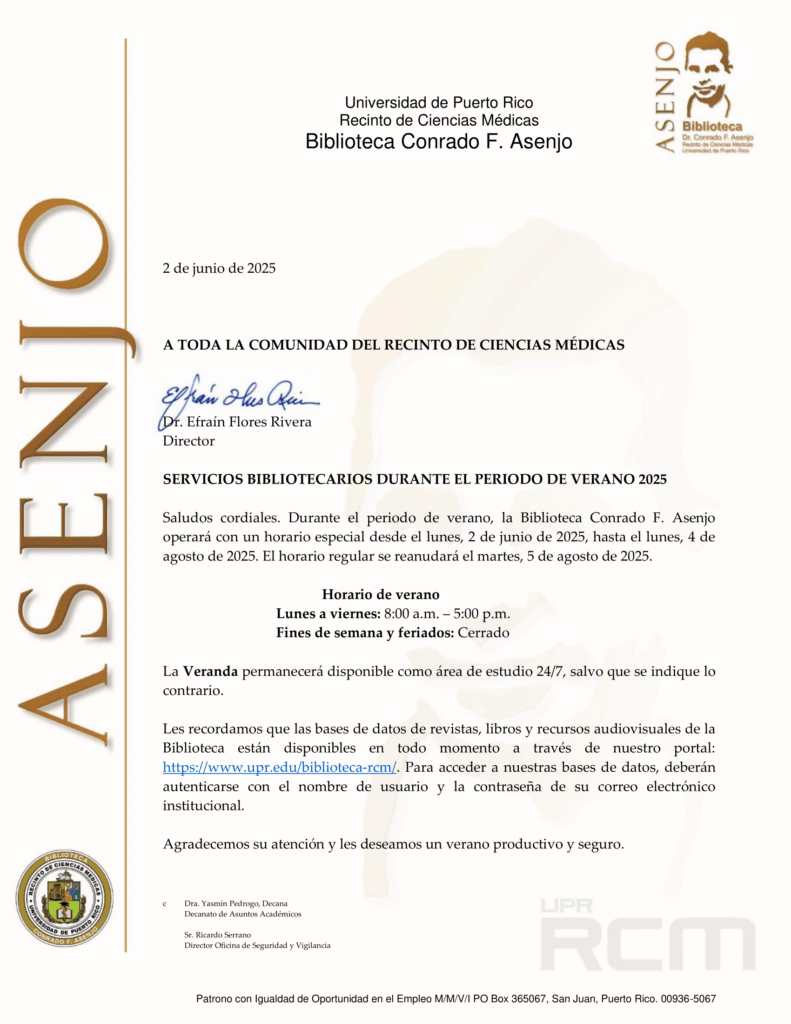 El Recinto de Ciencias Médicas (RCM) de la Universidad de Puerto Rico (UPR) tiene vigente la Licencia de Renovación de la