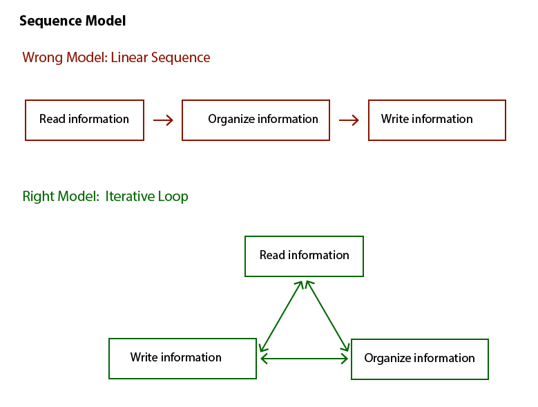 El proceso de revisión de literatura, al igual que en todas las etapas de la investigación, no es lineal. La revisión puede llevarnos a más preguntas que respuestas, a descubrir la necesidad de profundizar en la búsqueda de información o a determinar otro enfoque en el tema. A su vez es un proceso de reflexión donde debemos reconsiderar el método de busca y los recursos, ya sean impresos o en línea. La organización efectiva en el proceso de examinar, inquirir y rebuscar es indispensable para un manejo planificado y efectivo de la información y por ende las ideas y creación del investigador.