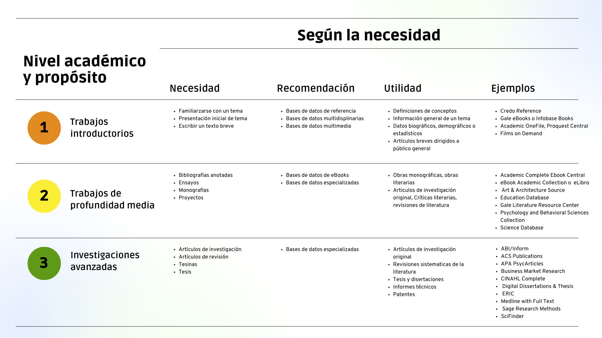 Elegir la base de datos más adecuada para tu investigación es un paso importante que determinará la calidad y relevancia de la información que encuentres. Cada tipo de necesidad requiere diferentes recursos. Conocer esta información de antemano evitará que sientas frustración al momento de comenzar una búsqueda.