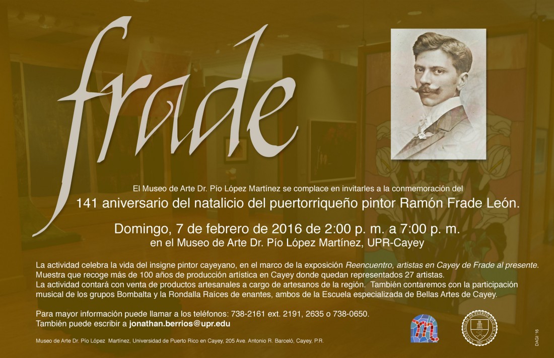 La actividad celebra la vida del insigne pintor cayeyano, en el marco de la exposición Reencuentro, artistas en Cayey de Frade al presente. Muestra que