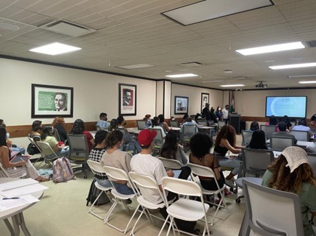 El pasado 22 de abril tuvimos el honor de recibir a los/as estudiantes que comienzan sus estudios de bachillerato en el Departamento de Ciencias Sociales, en agosto de 2023. Celebramos acogerlos en su universidad, la mejor universidad del país, la Universidad de Puerto Rico.