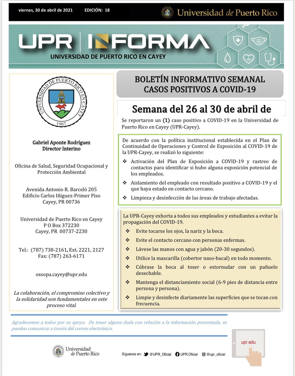 - Plan de manejo por riesgo de contagio con SARS-CoV-2 (UPR Cayey-OSHA3992)