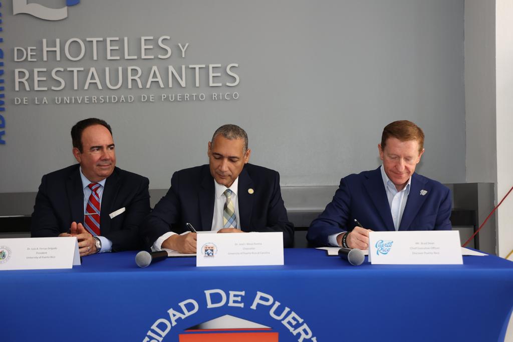Carolina, Puerto Rico, 11 de marzo de 2024 – Discover Puerto Rico y la Universidad de Puerto Rico en Carolina (UPRCa) firmaron hoy un acuerdo de colaboración que, además de estrechar la cooperación entre ambas instituciones, facilitará la integración de recursos en seminarios, talleres y experiencias prácticas para los estudiantes de la Escuela de Administración de Hoteles y Restaurantes del sistema universitario.