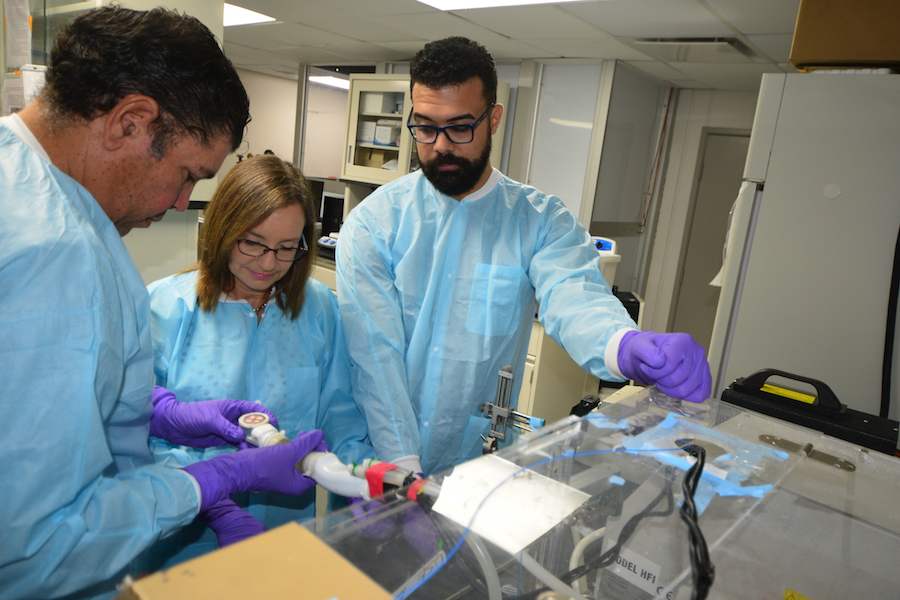 “Es una tecnología que lleva varios años en desarrollo. Comenzamos a trabajarla desde que inicié mi maestría, luego en mi doctorado y postdoctorado. La parte innovadora es que creamos unos dispositivos médicos que fueron patentizados dentro de la UPR. La manera en que se lleva a cabo esta terapia es que se inyecta un área de interés con unas nanopartículas magnéticas. Luego, con nuestro producto exponemos esas partículas en el tumor a un campo magnético, y esa interacción hace que la temperatura comience a elevarse. Al llegar a cierto valor, esas células de cáncer ya no toleran el alza y comienzan a morir”, explicó Castro Torres.
