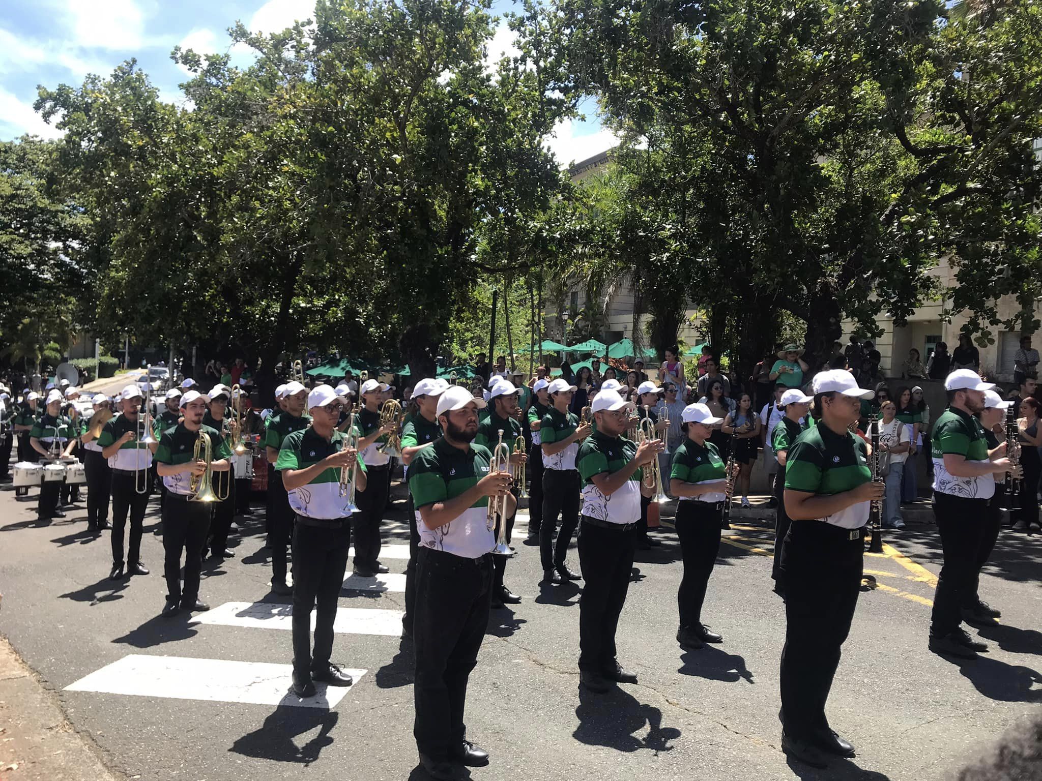 Para conmemorar esta efeméride, y como es tradición, la centenaria Banda Colegial y sus Abanderadas recorrieron las calles del campus el pasado jueves, culminando con una presentación frente al Centro de Estudiantes.