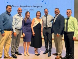 “Esta ceremonia marca un momento transcendental en la formación académica y profesional de estos estudiantes, también surge un compromiso y sentido de responsabilidad hacia la misión de nuestra Escuela, el programa de anestesia y el Recinto de Ciencias Médicas. En la Escuela de Enfermería, reconocemos su compromiso y empeño para seguir adelante y enfrentar los retos. Les auguramos una exitosa carrera que será de gran beneficio para la salud de Puerto Rico”, manifestó la Dra. Pereira Morales.