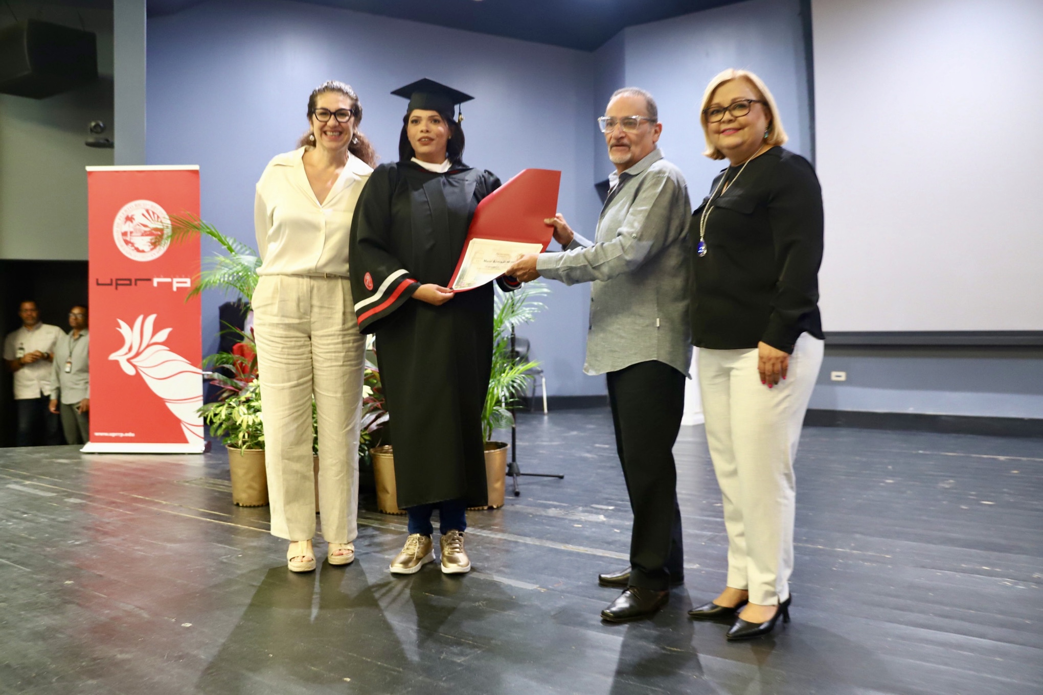 Marie R. Kercadó Meyers, Yosmar Maité Maldonado Morales y Yomaira Ramos Rosado obtuvieron un bachillerato en Artes del Programa de Estudios Generales y una concentración menor en Estudios de Mujer y Género. Como parte del acto de reconocimiento —realizado en el anfiteatro # 1 de la Facultad de Estudios Generales— a las dos últimas se les entregó —además— un certificado por los premios obtenidos en el certamen literario del Departamento de Inglés del recinto riopedrense durante el semestre, a Maldonado Ramos por su ensayo “I’m Here to Stay”; y a Ramos Rosado por “Pandemic”, en la categoría de poesía.