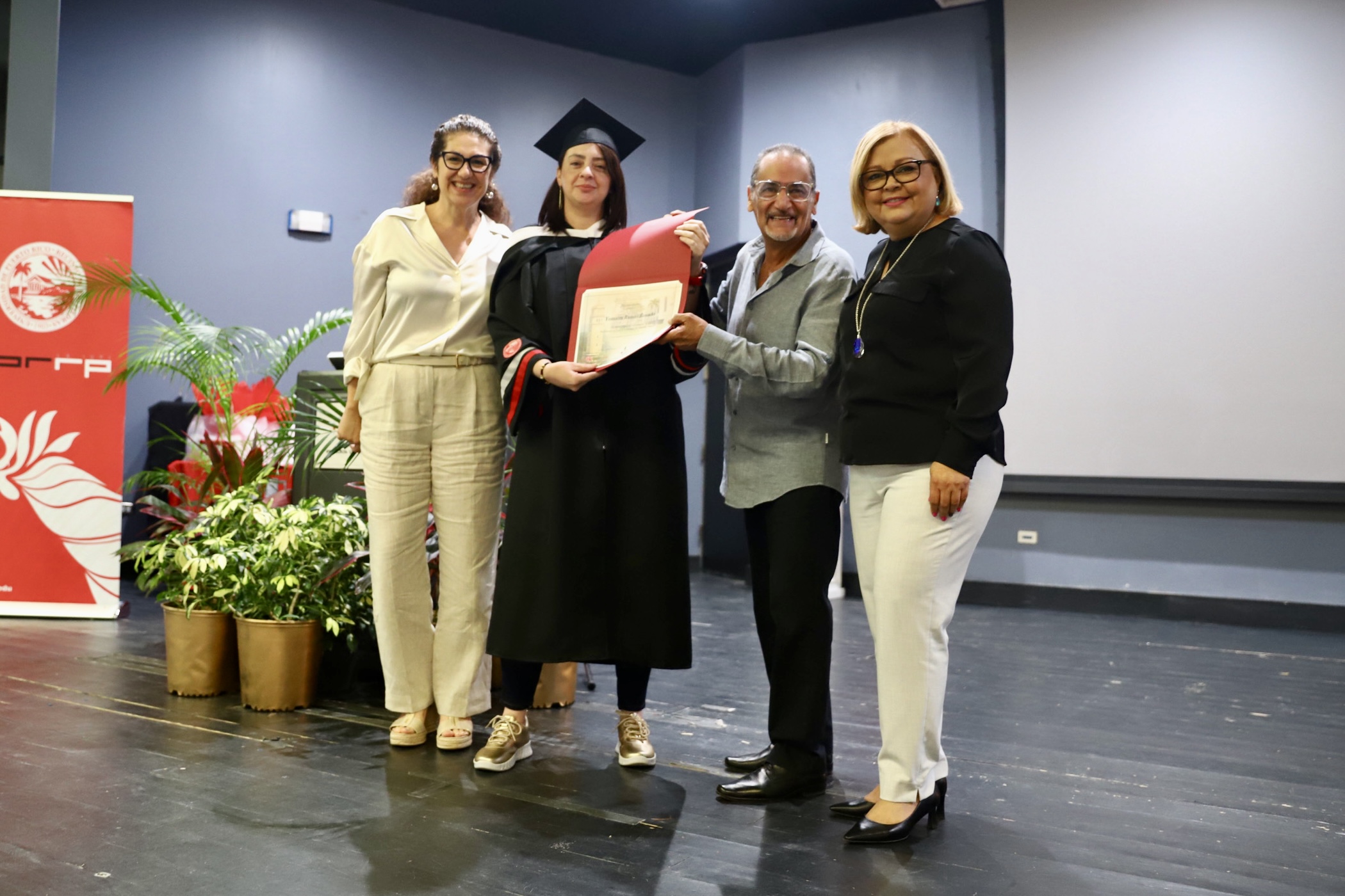 Dra. Edna Benítez, Yomaira Ramos Rosado, Dr. Carlos Sánchez Zambrana, decano y Ana Escobar Pabón, secretaria del DCR.