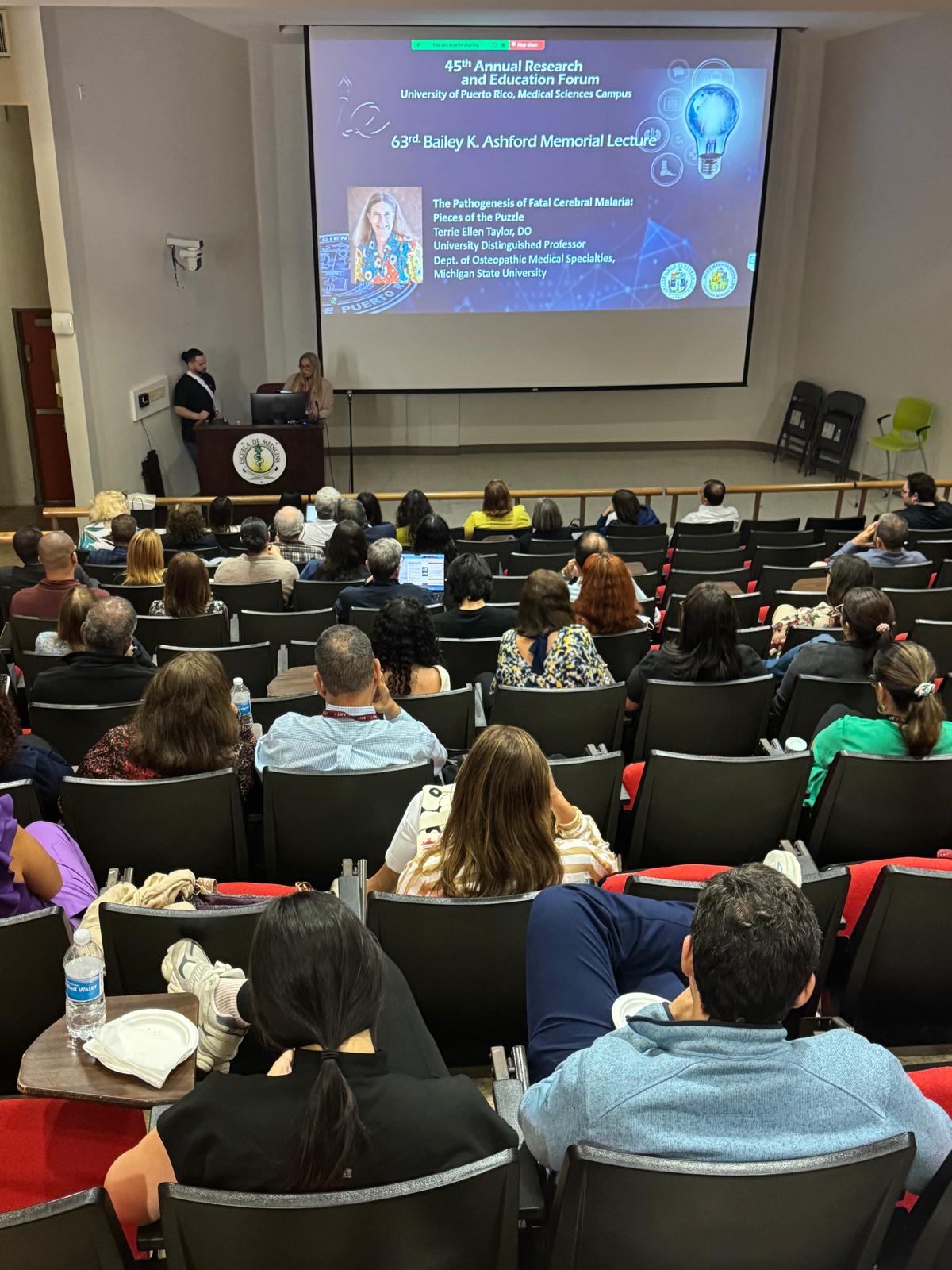 La doctora en medicina osteopática, científica y profesora distinguida de la Universidad Estatal de Michigan, Terrie Ellen Taylor, expuso los avances logrados lo largo de cuarenta años de investigación sobre la forma más letal de la malaria, la malaria cerebral, ante un centenar de estudiantes y docentes reunidos con motivo de la 63ta. Conferencia Magistral Bailey K. Ashford del Recinto de Ciencias Médicas de la Universidad de Puerto Rico.