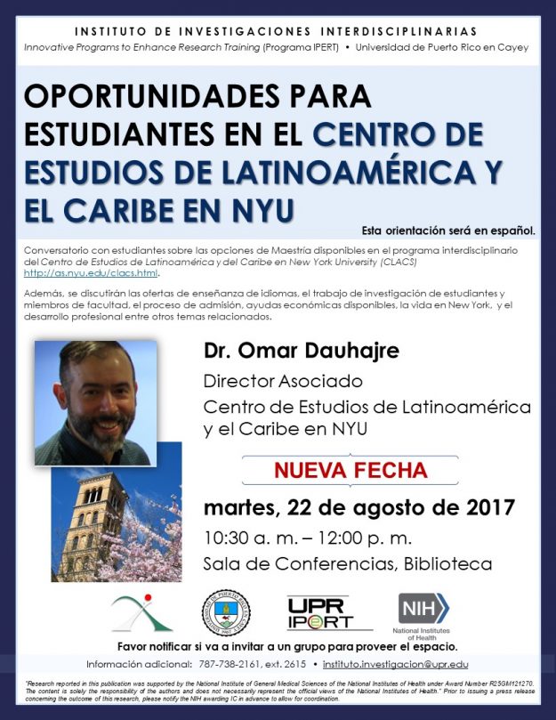 Oportunidades para estudiantes en el CLACS ActividadesBy institutoagosto 3, 2017promo-orientacion_OmarDauhajre-NuevaFecha