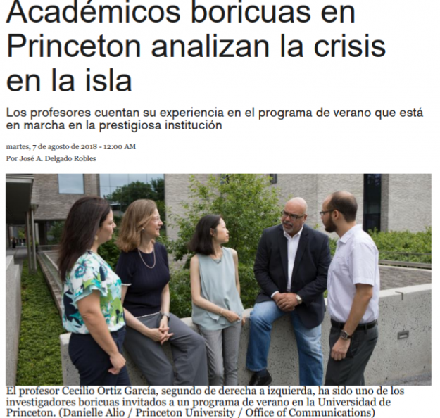 Por: El Nuevo Día Leer artículo: https://www.elnuevodia.com/noticias/locales/nota/academicosboricuasenprincetonanalizanlacrisisenlaisla-2439826 Washington – En la Universidad de Princeton, en Nueva Jersey, alrededor de una docena de académicos, artistas e investigadores puertorriqueños confirman el potencial que tiene la convergencia interdisciplinaria para enfrentar los retos a que se enfrenta Puerto Rico, sobre todo después del agravamiento de la crisis que dejó el huracán María. Los…