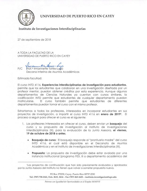 Curso INTD 4116 – Experiencias interdisciplinarias de investigación para estudiantes – enero 2019 NoticiasBy Francisco Camachoseptiembre 28, 2018