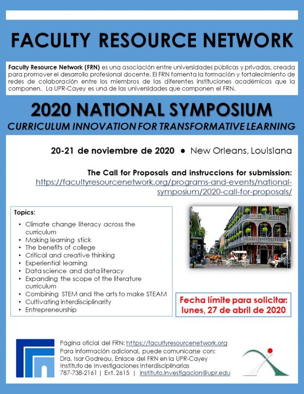 [FACULTAD UPR-CAYEY] 2020 National Symposium UncategorizedBy Francisco Camachomarzo 4, 2020Información para la facultad de UPR-Cayey