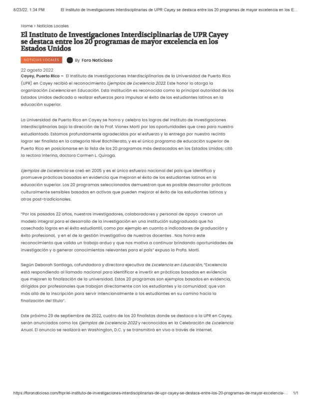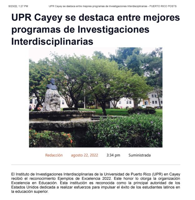 Reportaje: Instituto de Investigaciones Interdisciplinarias de UPR Cayey se destaca entre los 20 programas de mayor excelencia en los Estados Unidos – El Mundo Puerto Rico