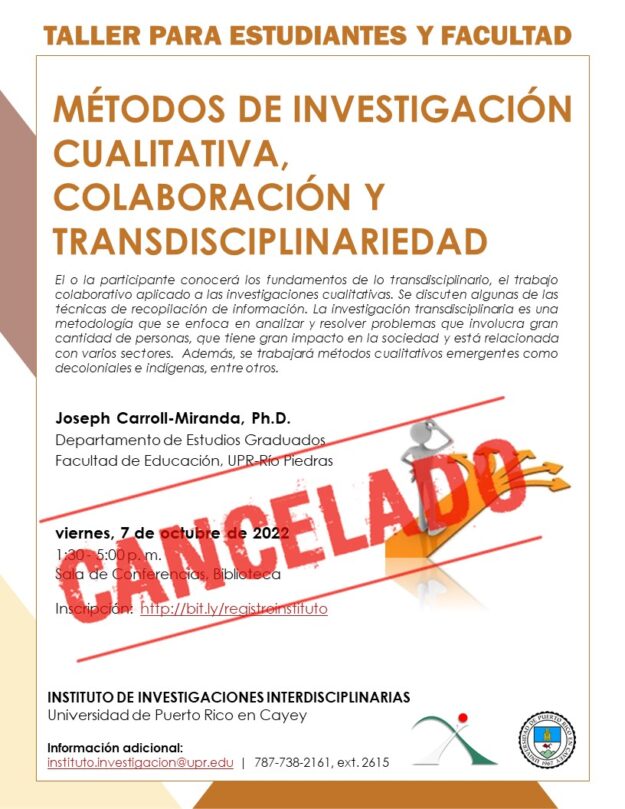 Taller para estudiantes y facultad ACTIVIDAD CANCELADA Por razones ajenas a nuestra voluntad, nos vemos obligados a cancelar este taller