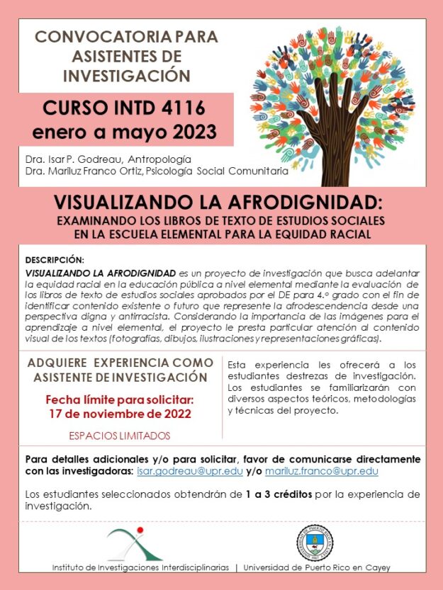 Para detalles adicionales y/o para solicitar, favor de comunicarse directamente con las investigadoras: isar.godreau@upr.edu y/o mariluz.franco@upr.edu