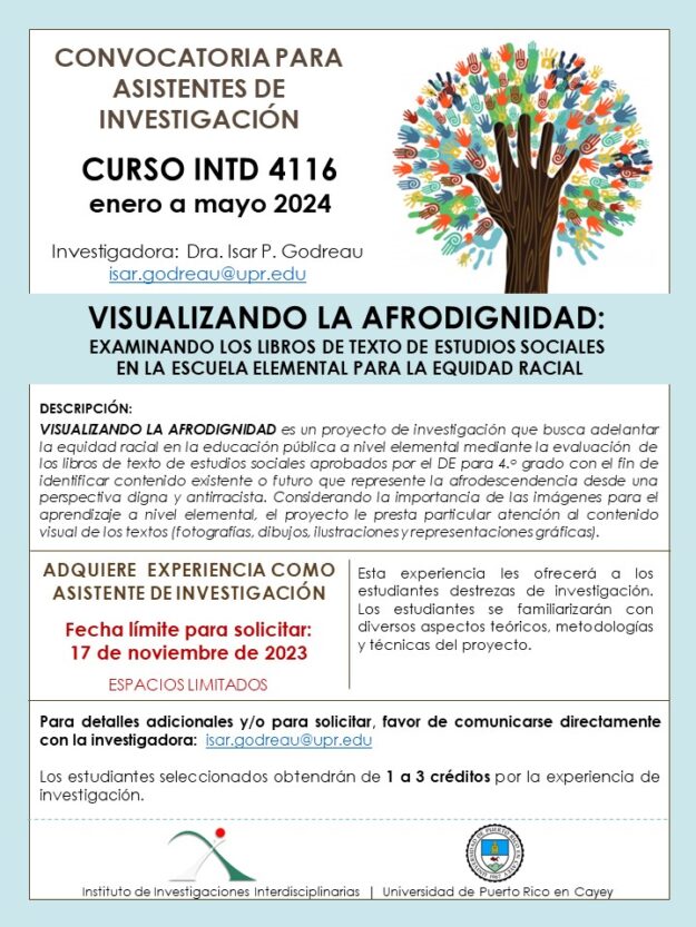 Estudiantes interesados, favor comunicarse directamente con las investigadoras: Dra. Isar Godreau, isar.godreau@upr.edu Dra. Mariluz Franco, mariluz.franco@upr.edu