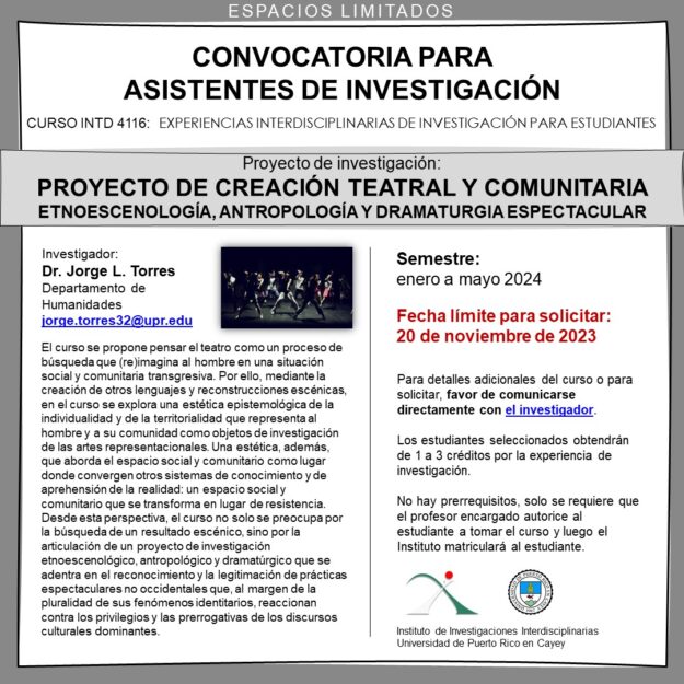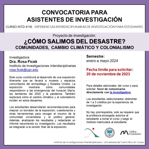 Estudiantes interesados, favor de comunicarse con la investigadora: Dra. Sally Delgado, sallyj.delgado@upr.edu
