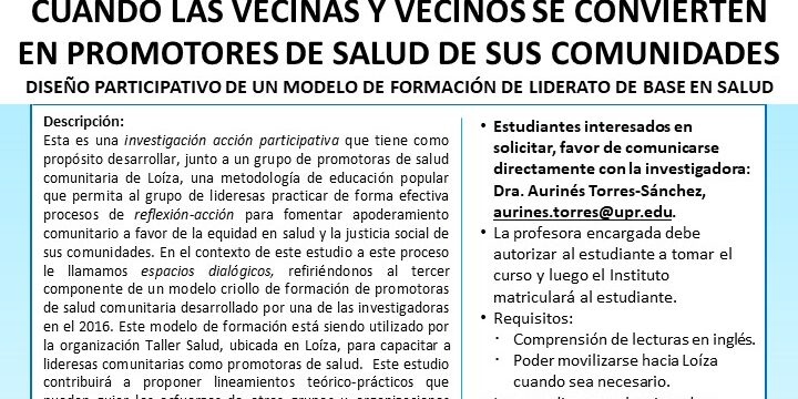 Nov42019Uncategorized Estudiantes interesados, favor de comunicarse directamente con la Dra. Aurinés Torres Sánchez: aurines.torres@upr.edu Category: UncategorizedBy Francisco Camachonoviembre 4, 2019 Author: Francisco Camacho Post navigationPreviousPrevious post:Taller para estudiantes: Portafolio digitalNextNext post:Convocatoria para asistentes de investigaciónRelated postsPaneloctubre 22, 2025Paneloctubre 17, 2025Reclutamiento estudiante subgraduadomayo 30, 2025Encuentro Estudiantil 2025mayo 14, 2025¡Enhorabuena!marzo 31, 2025Reclutamiento de estudiante a jornalmarzo 11, 2025