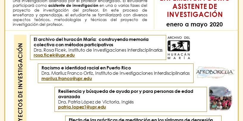 Nov62019Uncategorized Category: UncategorizedBy Francisco Camachonoviembre 6, 2019 Author: Francisco Camacho Post navigationPreviousPrevious post:Convocatoria para asistentes de investigaciónNextNext post:Coaching Lab.Related postsPaneloctubre 22, 2025Paneloctubre 17, 2025Reclutamiento estudiante subgraduadomayo 30, 2025Encuentro Estudiantil 2025mayo 14, 2025¡Enhorabuena!marzo 31, 2025Reclutamiento de estudiante a jornalmarzo 11, 2025