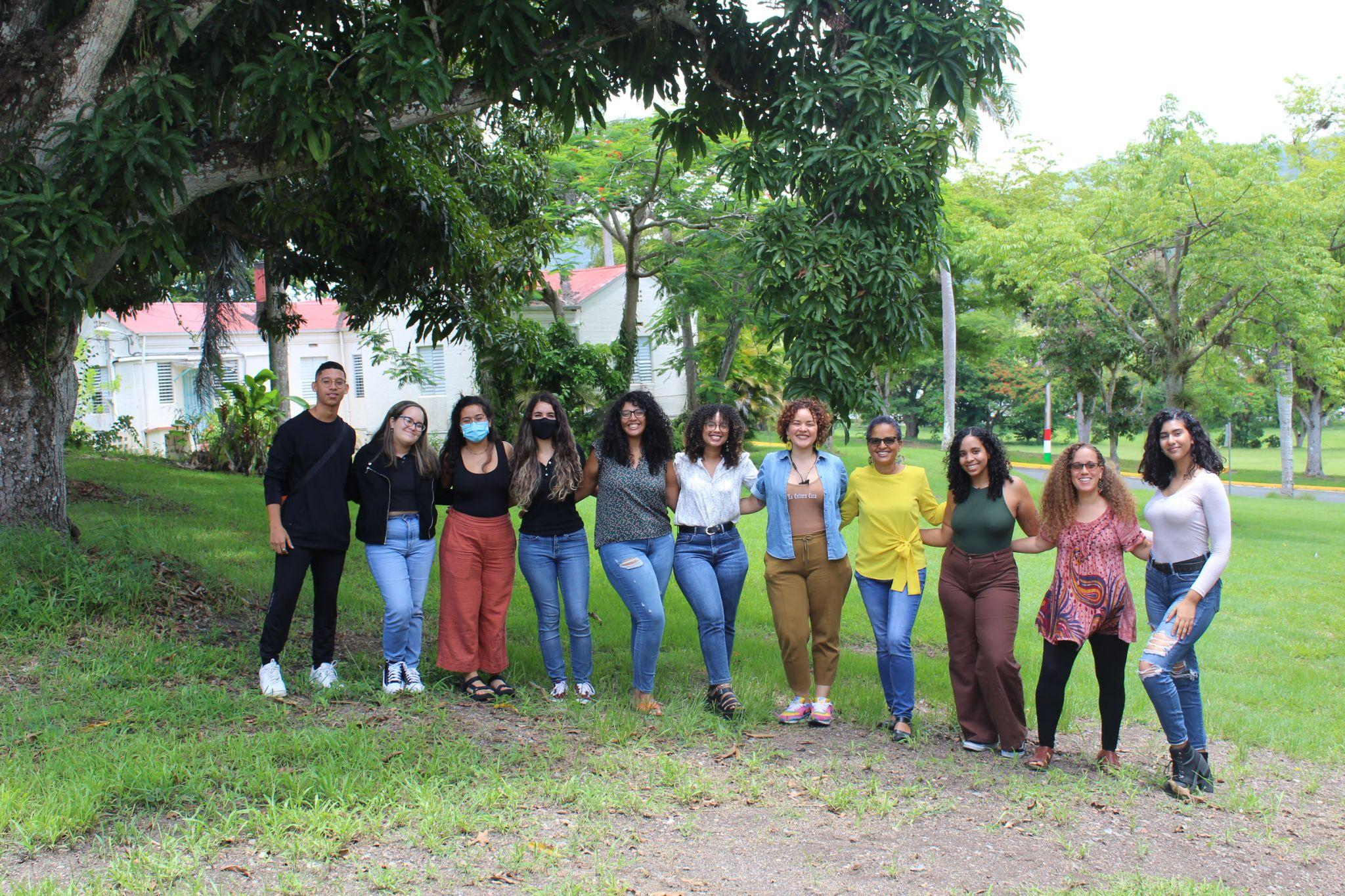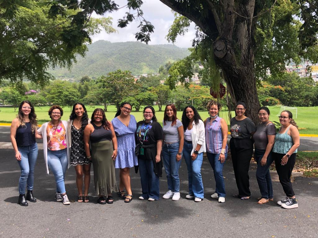 Equipo de trabajo de verano 2022 en la UPR-Cayey. En la foto, desde la izquierda: Isander J. Claudio-Rodríguez, Fabiola E. Zayas-Torres, Claudia E. Quiñones Ramos, Melisa E. Ramos Sepúlveda, Kayshla Robles Reyes, Gabriela Ortiz Laureano, María B. Serrano Abreu, Mariluz Franco Ortiz (mentora), Andrea M. Texidor Cintrón, Ísar P. Godreau (mentora) y Naomi R. Martínez-Ortiz.