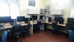 Está equipado con 9 computadoras windows para uso de los estudiantes asistentes de investigación y facultad. Además cuenta con los siguientes programados para la investigación cualitativa y cuantitativa: