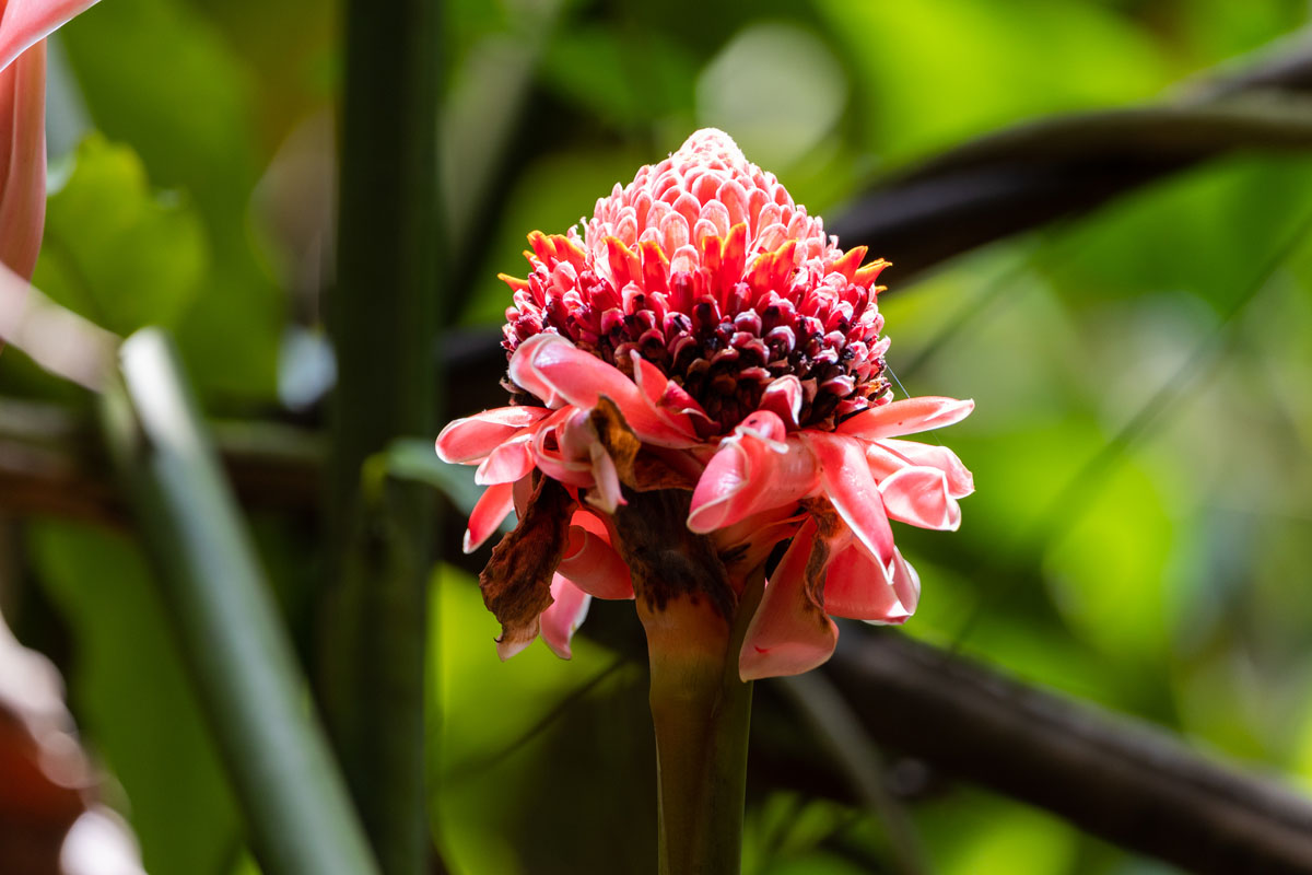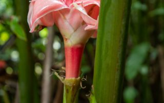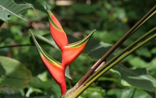 Las heliconias, nativas de América tropical, atraen polinizadores con sus colores brillantes. Los jengibres, con más de 1,400 especies del Viejo Mundo, tienen flores de diversos tamaños y formas, polinizadas por insectos y aves pequeñas.