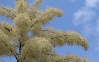Los bambúes, nativos de Asia, pueden crecer hasta cuatro pies al día y florecen solo una vez antes de morir. Se usan en construcción, muebles, papel, alimentos y medicinas. Hay entre 100 y 200 especies.