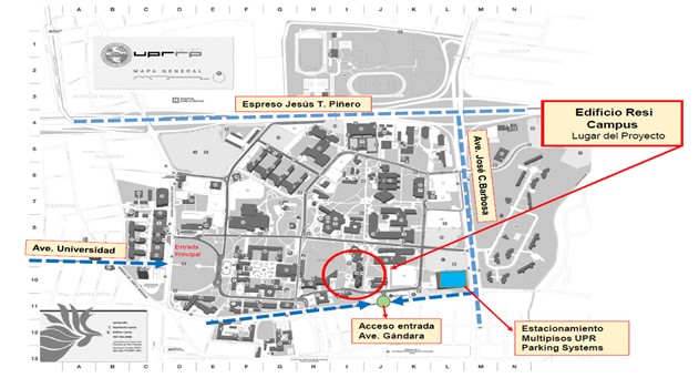 El director de la Oficina de Desarrollo Físico e Infraestructura, Julio Collazo Rivera indicó que el edificio ResiCampus cuenta con aproximadamente 120,000 pies cuadrados distribuidos en nueve (9) pisos y una azotea. “El proyecto propuesto contempla reducir la carga ocupacional, al considerar solamente dos residentes por unidad, manteniendo la huella interior de los espacios para nuevos usos y nueva distribución interior”, detalló Collazo Rivera.
