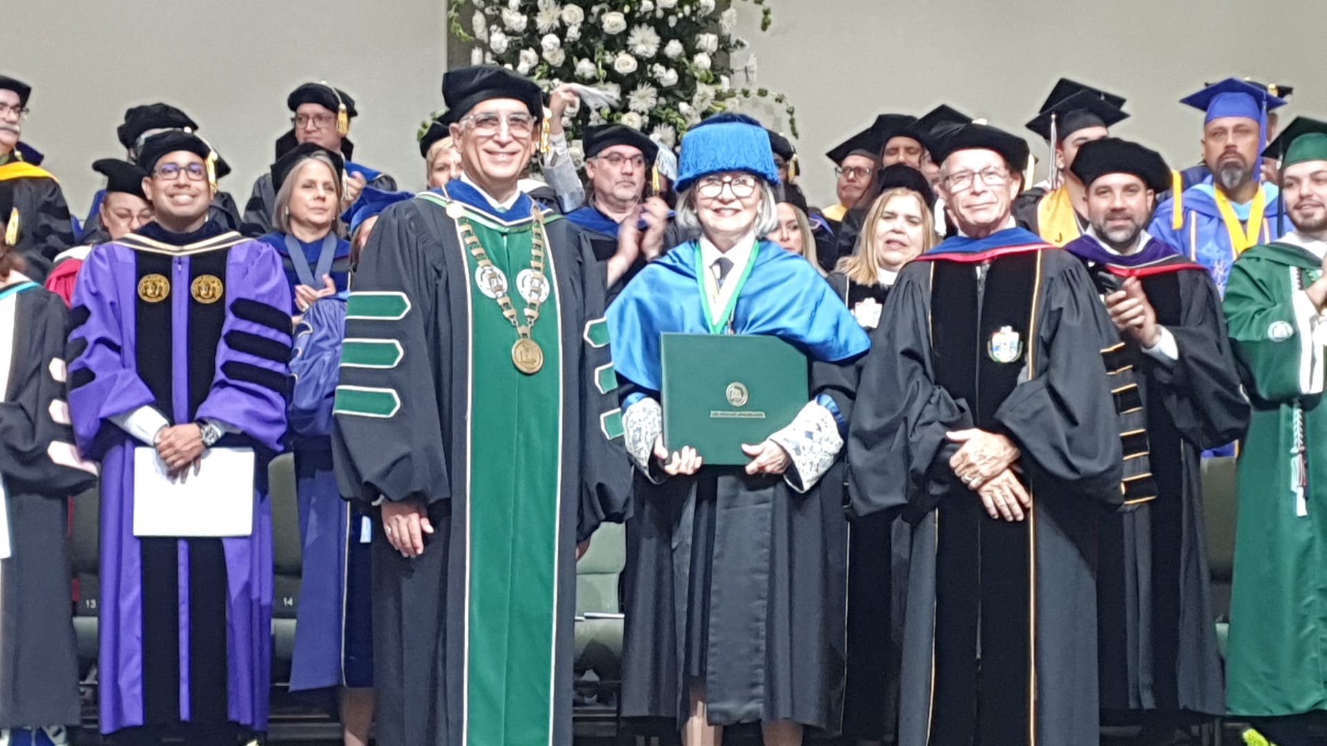 Durante el evento, se distinguió con el rango de profesor emérito a los catedráticos jubilados, los doctores Jorge Iván Vélez Arocho, del Colegio de Administración de Empresas; así como a Sonia Borges Delgado y José A. Mari Mutt, ambos del Departamento de Biología.