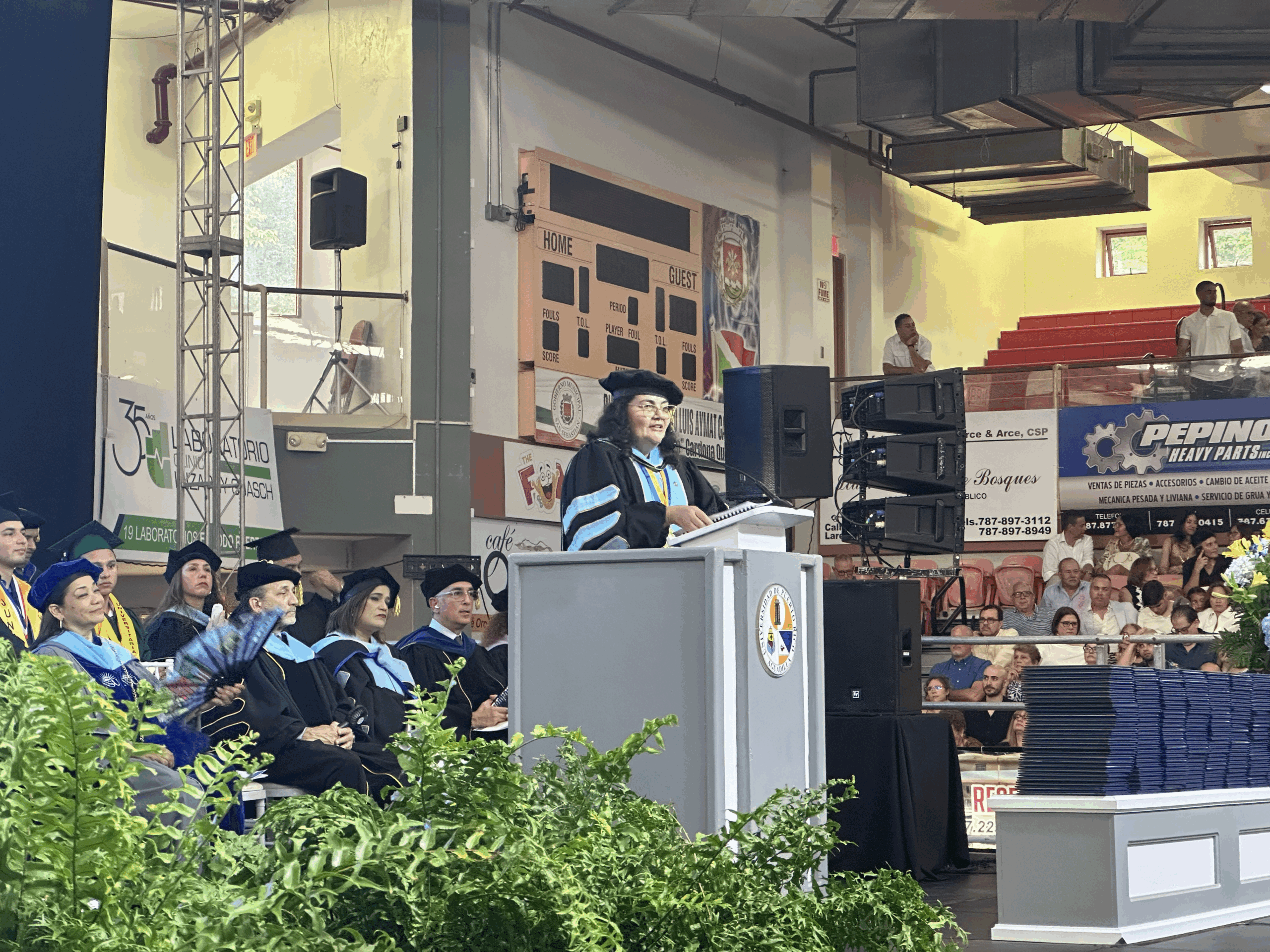 Durante la ceremonia, realizada en el Coliseo Luis Aymat Cardona de San Sebastián, la rectora Dra. Sonia Rivera González, destacó: “Tengo plena confianza en que la Clase 2025 está preparada para afrontar los retos del futuro con resiliencia y determinación.”