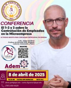 Dirigida al público en general, especialmente a empresarios y profesionales de recursos humanos, esta actividad será libre de costo y ofrecerá información clave sobre las mejores prácticas en la contratación de empleados. La conferencia estará a cargo del Lcdo. Jaime Sanabria, reconocido experto en Derecho Laboral y socio de ECIJA Puerto Rico, una firma de abogados integral con diversas áreas de práctica en derecho corporativo. Con más de 16 años de experiencia asesorando a empresas puertorriqueñas e internacionales, el Lcdo. Sanabria abordará aspectos esenciales del proceso de contratación en microempresas, incluyendo el marco legal aplicable, estrategias para el cumplimiento normativo y las consecuencias de una contratación inadecuada.