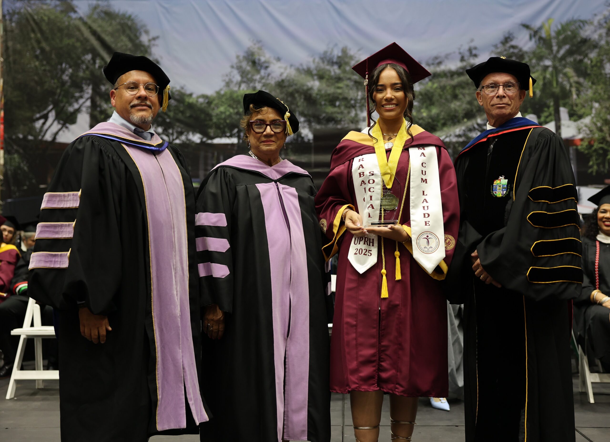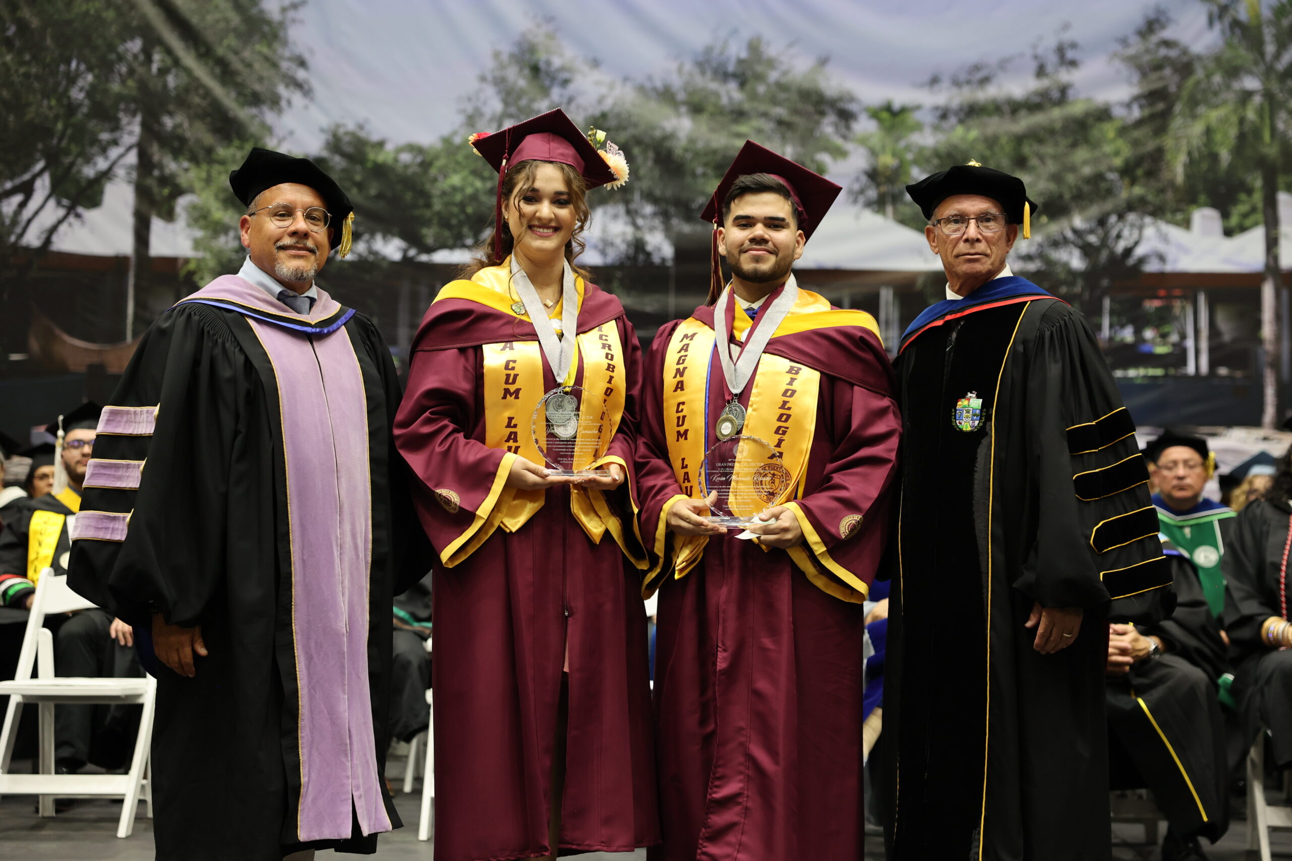 Se confirieron grados universitarios a 426 estudiantes; de éstos 41 culminaron su grado asociado y 385 su bachillerato. Se otorgaron nueve premios de distinciones académicas a los graduandos con los promedios más alto por área académica. Estos son: Frank Junior Navarro Amaro (Tecnología Química), Adriana Piñero Torres (Ciencias Sociales con Investigación-Acción Social), Paola K. Carrasco Dávila (Educación Elemental Nivel Primario y Educación Especial), Julmaliz Vázquez Espinosa (Trabajo Social), Isabel Rodríguez Rodríguez (Trabajo Social), Mabel M. Acevedo Velázquez (Enfermería), Dorielle Rivera Gauthier (Enfermería), Valerie N. López Quiñones (ADEM / Comercio Internacional) y Paula M. Rosas González (ADEM / Contabilidad). Los jóvenes fueron escoltados por profesores de sus respectivos departamentos académicos para recibir las distinciones.Por su parte, el Dr. Carlos A. Galiano, hizo entrega del Gran Premio del Rector a los estudiantes Yarelis Cruz Camacho y Kevin Mercado Rosado (Ciencias con concentración en Microbiología), Gabriela L. Dávila Alicea (Enfermería) y a la presidenta del Consejo General de Estudiantes de la institución, Adriana Piñero Torres (Ciencias Sociales con Investigación – Acción Social).